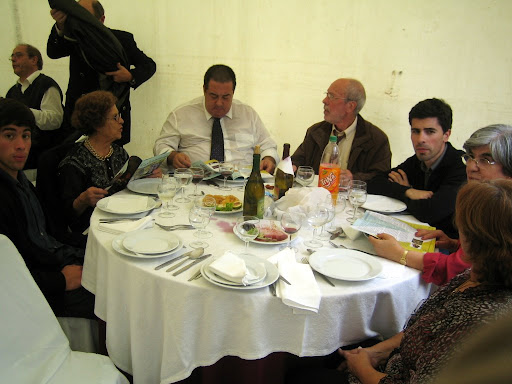 Numa das mesas (foto de cima) lá estão Antero Madeira, com a esposa, Maria João Macara e filhas. Numa outra mesa (foto do meio) João de Figueiredo, Natália de Figueiredo, Vasco Gouveia Ramos, Vasco Camilo Ramos, Ricardo Ramos, Drª Palmira Barreiras e Luísa Jordão.